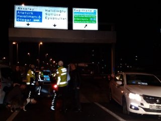 İstanbul E-5 karayolu Okmeydanı mevkii Haliç istikametinde, sürücüsünün ismi öğrenilemeyen 10 TC 022 plakalı otomobil ile 07 CMN 45 plakalı otomobil çarpıştı.