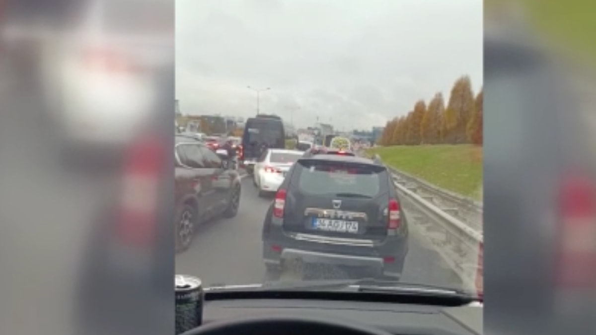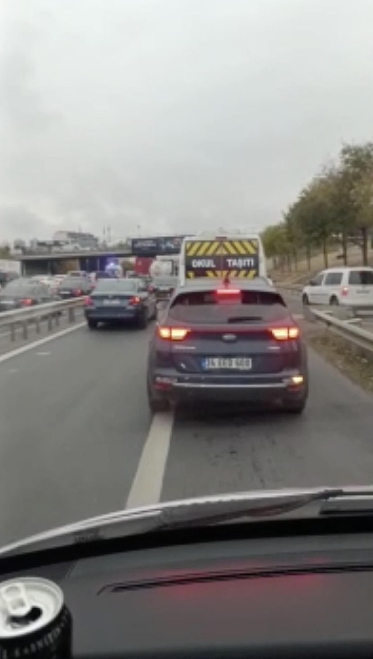 Yenibosna'dan Basın Ekspres Caddesi'ne doğru seyreden bazı araçların sürücüleri, yoğun trafikten kaçabilmek için emniyet şeridini kullandı.
