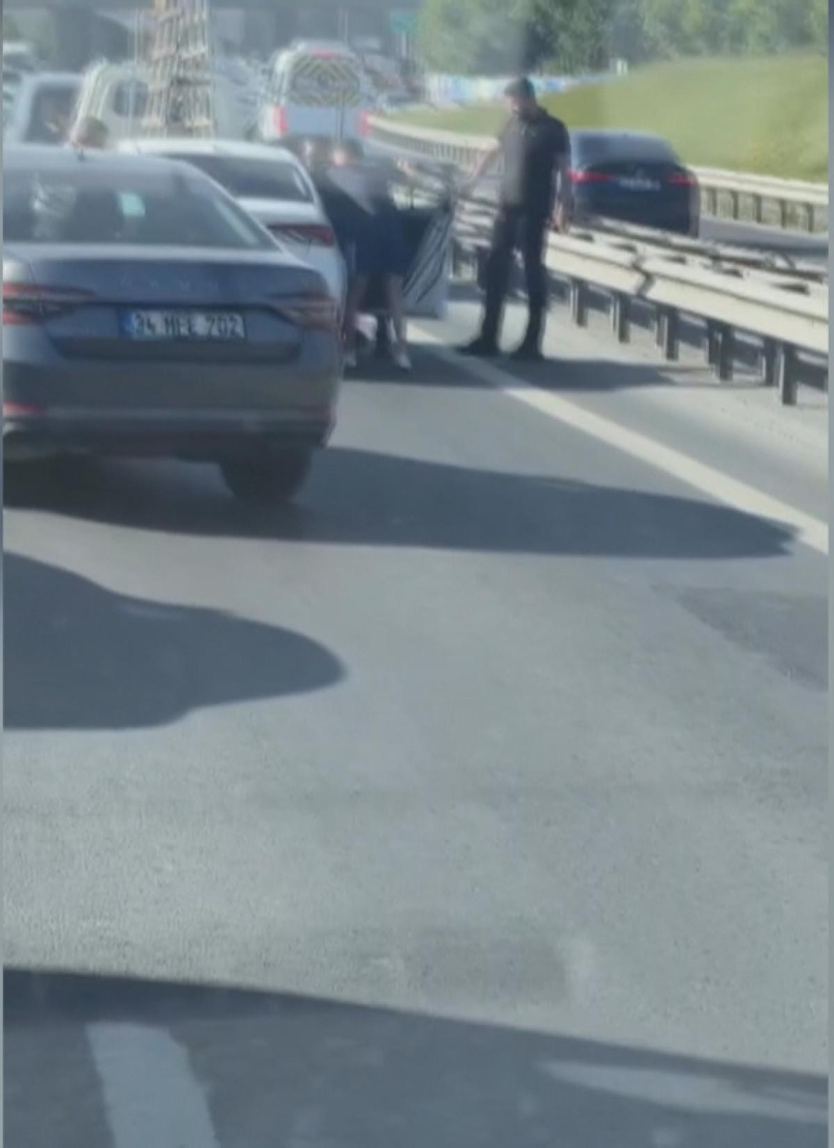 Küçükçekmece Basın Ekspres Yolu İkitelli istikametinde magandalar, kameraya takıldı.
