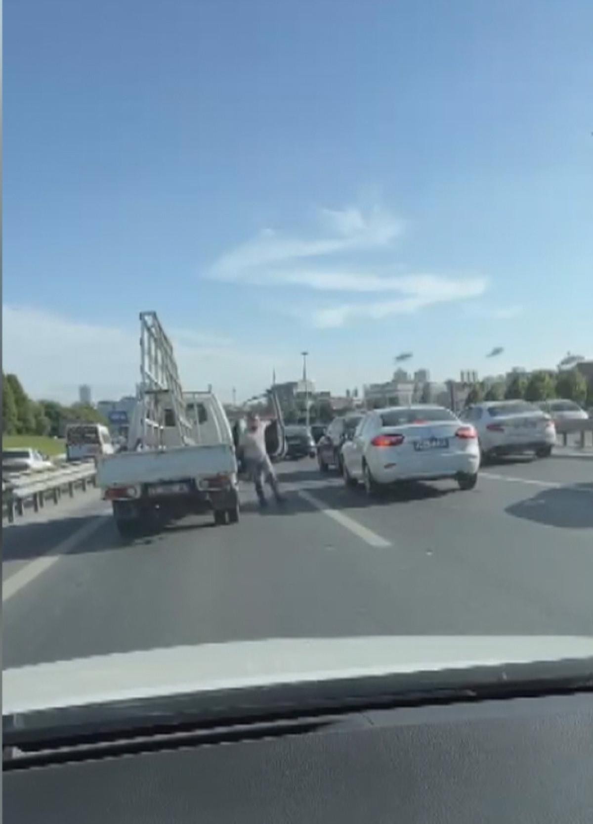 Bu sırada kamyonet, otomobil sürücüsünden uzaklaştı. Görüntülerde, otomobil sürücüsünün 'Polisler gelmese adamlar bizi dövecek' dediği duyuldu. Ancak polis ekiplerinin gitmesi ve trafiğin yoğunlaşmasıyla kamyonetten inenler, otomobil sürücüsüne saldırdı.