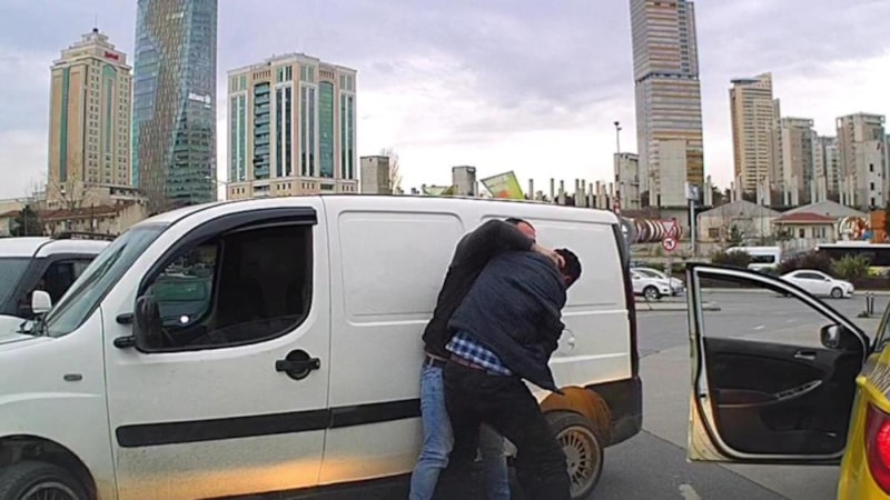 Ataşehir'de trafikte yol verme anlaşmazlığı nedeniyle iki sürücü arasında tartışma çıktı. Sürücüler arasında çıkan tartışma bir anda kavgaya dönüştü. O anlar ise bir başka aracın kamerasına anbean yansıdı.