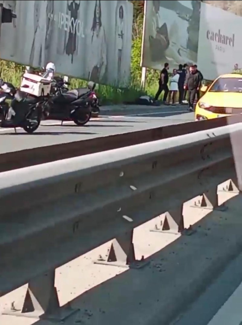 Trafikte motosikletiyle caddede ilerlediği sırada otomobil sürücüsü Mustafa Emir K. ile tartışan Muhammed Emin Aydoğdu, dengesini kaybedip yere düştü.