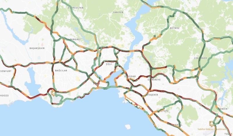 Saat 17.00 itibarıyla İstanbul'da trafik yoğunluğu yüzde yüzde 72'ye ulaşmış durumda...