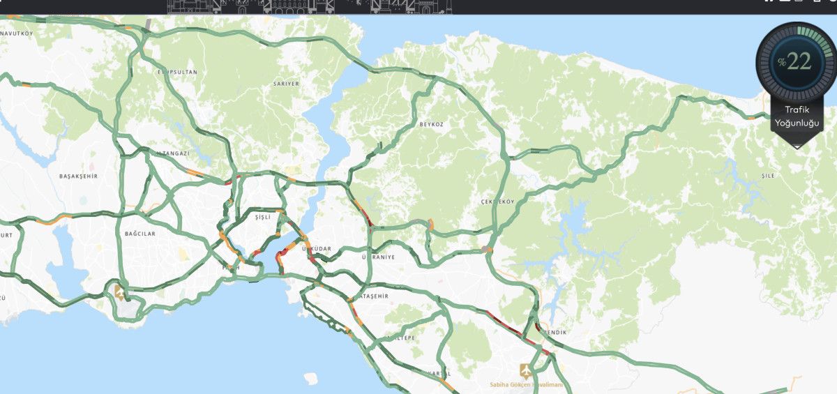 Saat 11.30'da ise trafik yoğunluğu yüzde 15 olarak kayıtlara geçti. Şu dakikalarda da trafik yoğunluğu yüzde 22 olarak kaydedildi.