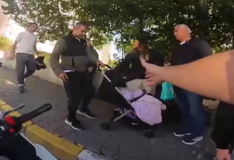Bu sırada kaldırımda bebek arabasındaki uyuyan çocuğuyla yürüyen bir baba, sürücüyü korkuya neden olmaması için korna çalmaması yönünde uyardı.