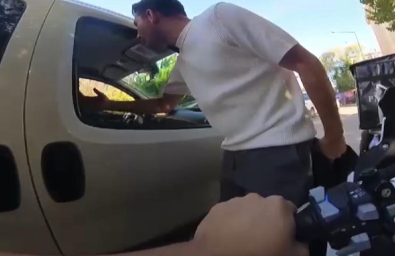 Olay anında çevrede bulunan bir vatandaş, aracın açık camından sürücünün üzerine yürüdü.