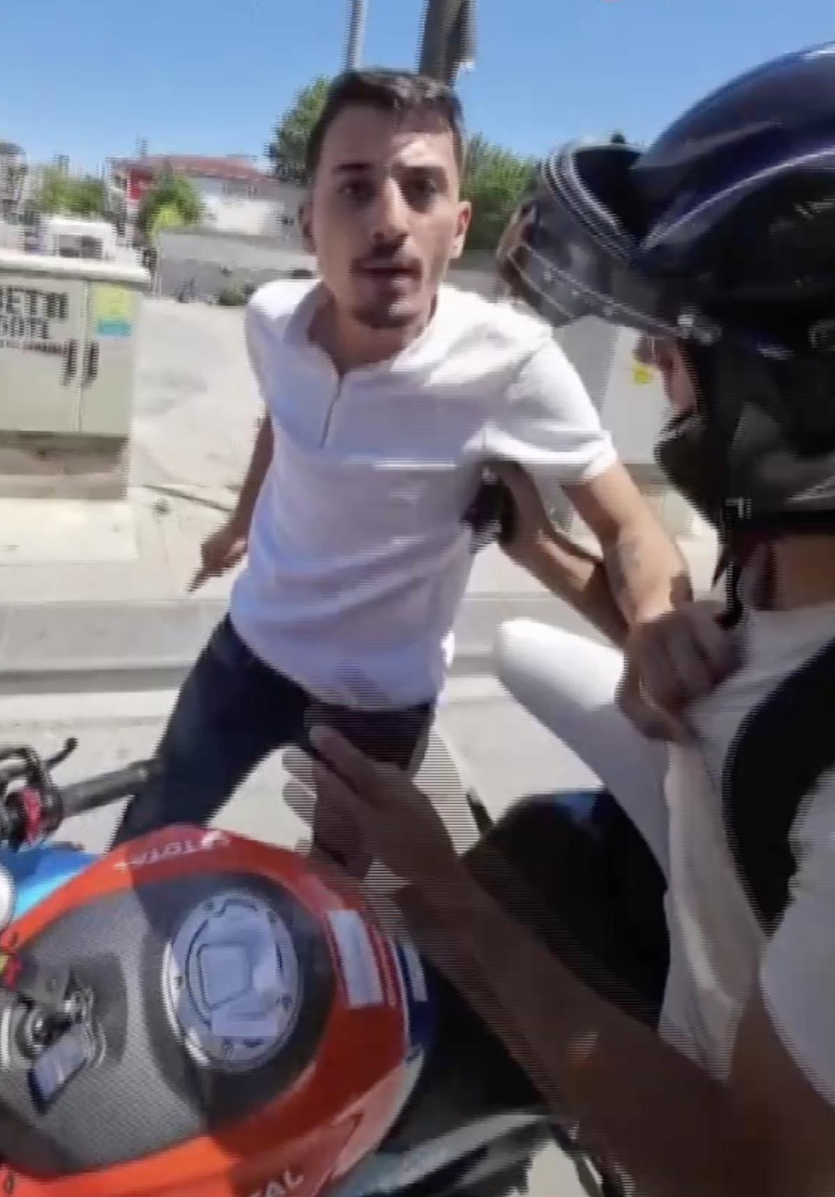 Öte yandan, şüphelilerin yakınlarının motosikletlinin şikayetini geri çekmesi için ikna etmeye çalıştığı anlar, kask kamerasına yansıdı.