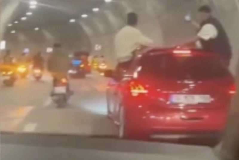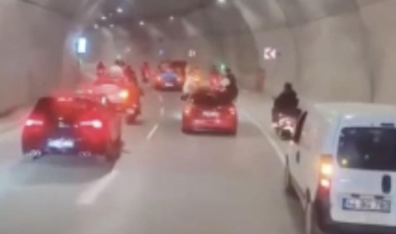 Üsküdar'da otomobil ve motosikletlerden oluşan konvoyun, tünel içinde trafiği tehlikeye düşürdüğü anlar, cep telefonu kamerasıyla görüntülendi.