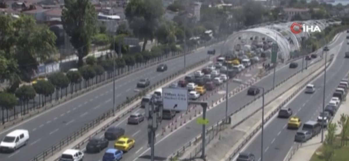 Tünel, yangın nedeniyle geçici süreyle trafiğe kapatıldı. Tünelin girişinde ise uzun araç kuyrukları oluştu.