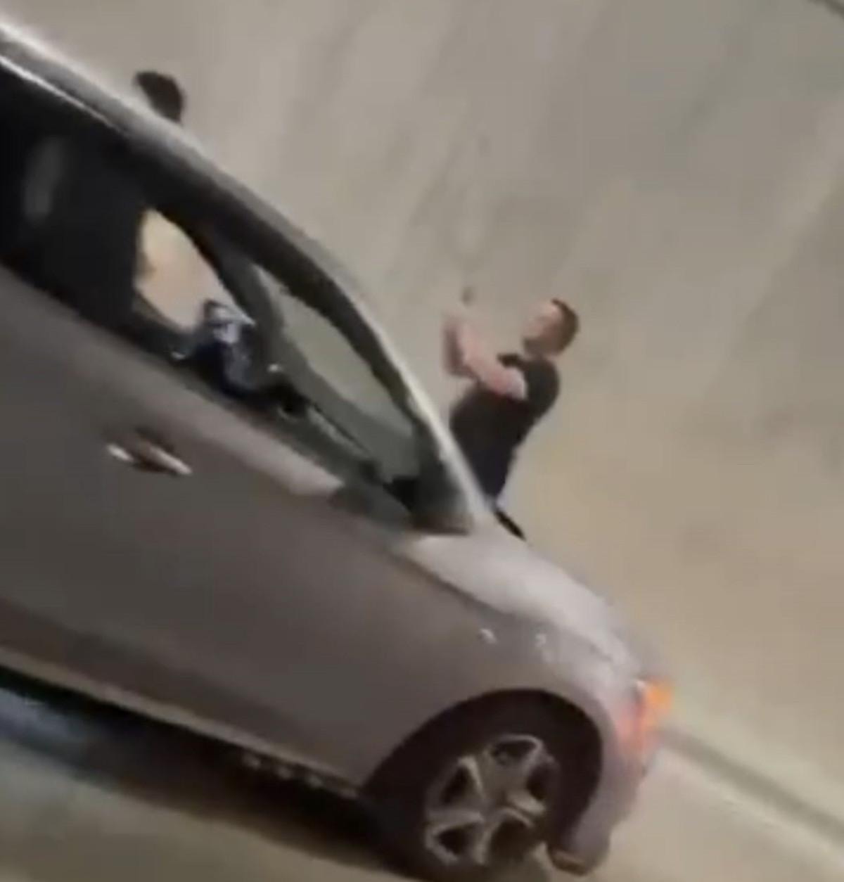 Tünelden geçen bir motosiklet sürücüsü ise, o anları cep telefonu kamerasıyla kaydetti.