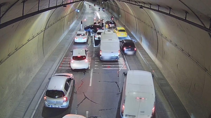 Tünel kamerası tarafından kaydedilen görüntüleri ihbar olarak değerlendiren polis ekipleri yolu kapatarak trafiği tehlikeye atan kişilerin kimliğini tespit etti.