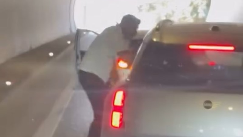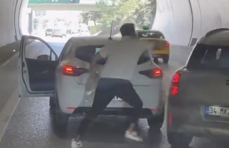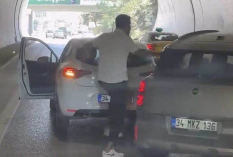Sürücülerden biri, tartıştığı diğer araç sürücüsünü takip ederek tünelde aracının önünü kesti.