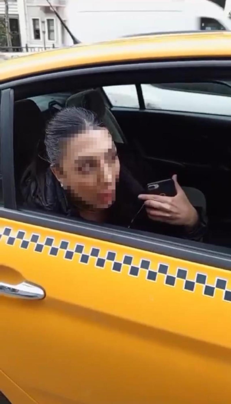 Yabancı uyruklu kadın ile taksici arasında hızlı gitmediği için çıkan kavgada kendisini darbettiğini iddia eden kadın, taksiciye hakaret ve küfretti. O anlar kamerada.