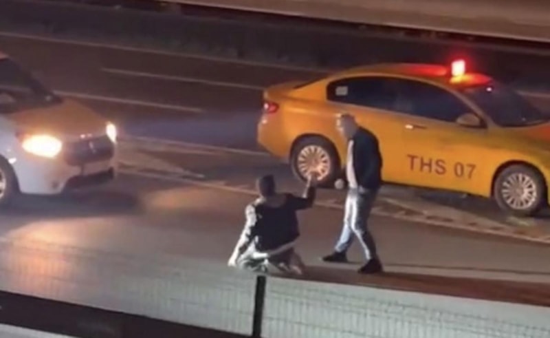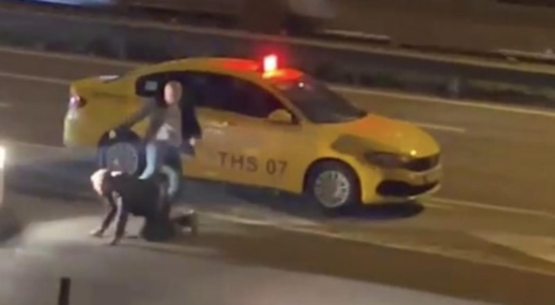 Esenyurt TEM bağlantı yolunda ücretini alamayan taksi sürücüsü, yolcusunu indirip yol ortasında tekme tokat dövdü. Yaşananlar vatandaşın cep telefonu kamerasına yansıdı.