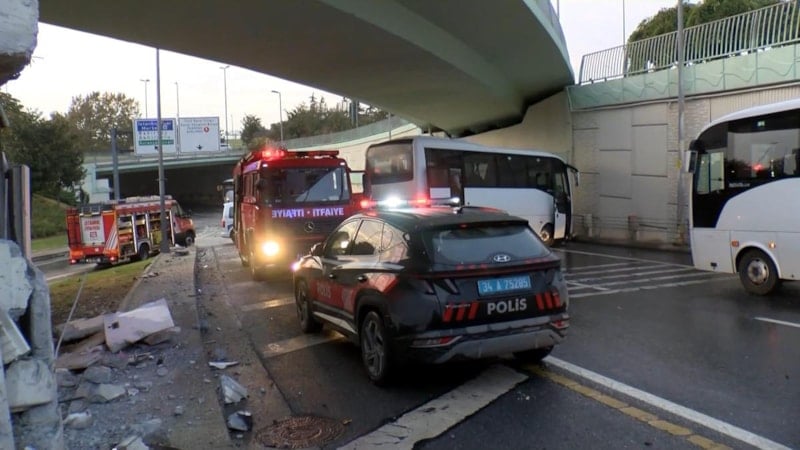 Bakırköy'de çevik kuvvet polislerini taşıyan servis otobüsü üst geçidin ayağına çarptı. Araçta sıkışan sürücü polis memuru, itfaiyenin çalışmasıyla kurtarılarak hastaneye kaldırıldı.