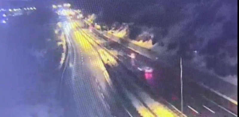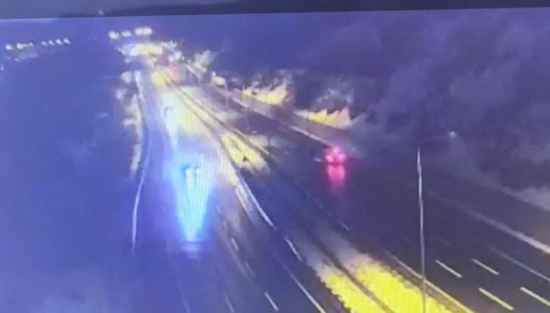 Görüntülerde, otoyolda seyreden servis aracının önce frene bastığı ardından da yoluna devam ederek bir kez daha frene bastığı anlar görülüyor.