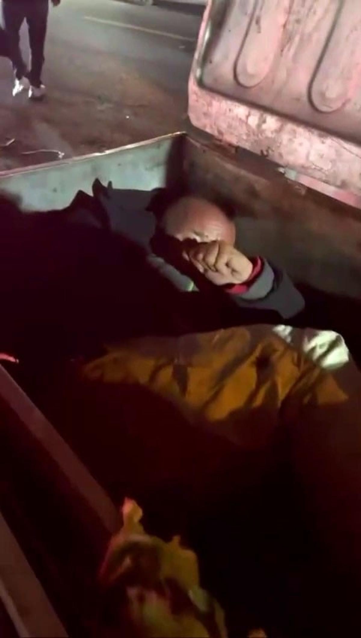 GENÇLER ÇÖP KONTEYNERİNİN İÇİNE ATTI