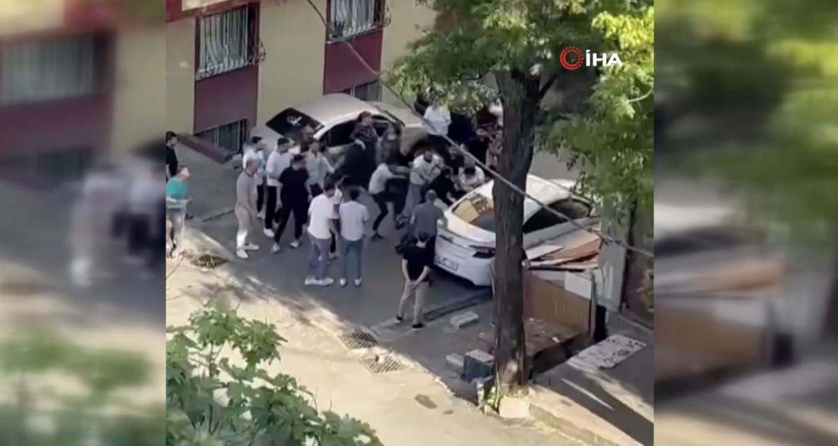 Görüntülerde, madde etkisinde olduğu iddia edilen şahsın kalabalık bir grup tarafından dayak yediği şahsın ise dayaktan kaçabilmek için bir aracın üstüne çıktığı anlar yer aldı.