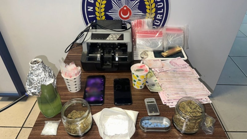 Evde yapılan aramalarda; 434,9 gram esrar, 84,7 gram kokain, 25 adet ekstasy hap, 6,1 gram metamfetamin, 2 adet hassas terazi, 23 bin 200 TL, 31 dolar nakit para, 1 adet para sayma makinesi, 2 cep telefonu ve çok sayıda klipsli poşet ele geçirildi.