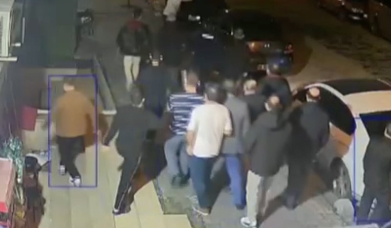 Görüntülerde, şahsın işletmeye bıçakla geldiği ardından ise çevredekilerin olaya müdahale ederek şahsı dövdüğü anlar yer aldı.