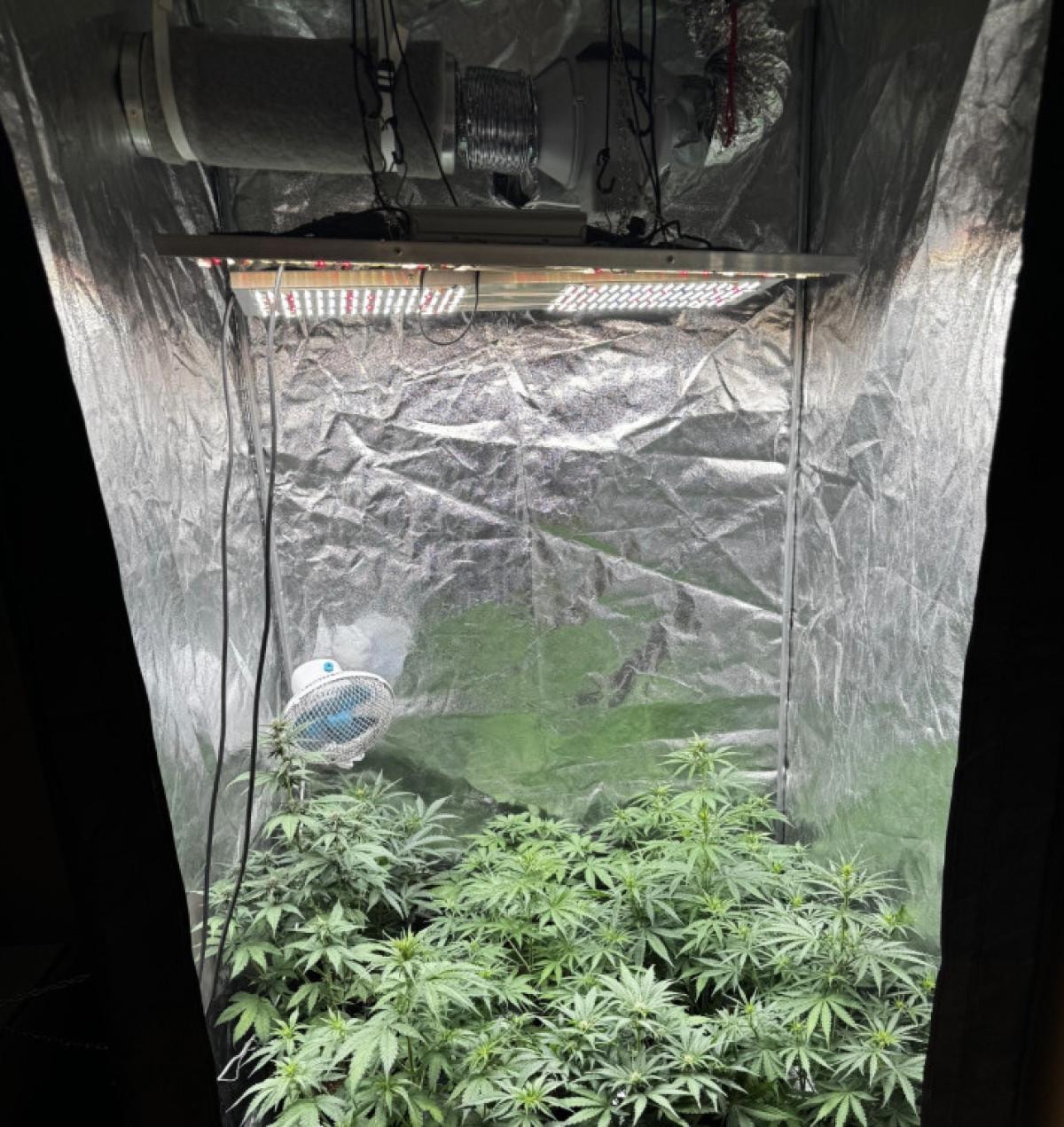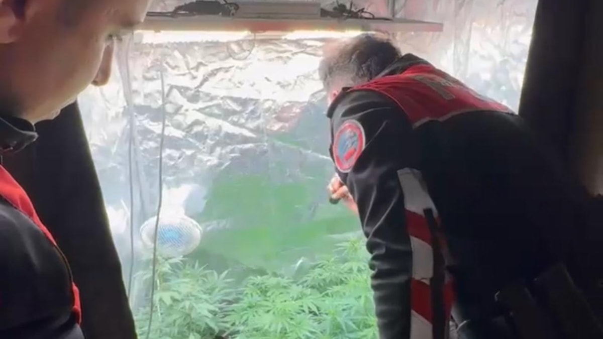 Evde bir odaya giren polis, bez dolabı açtığında içerisinde sistem kurulmuş şekilde saksı içerisinde kök Hint keneviri buldu.