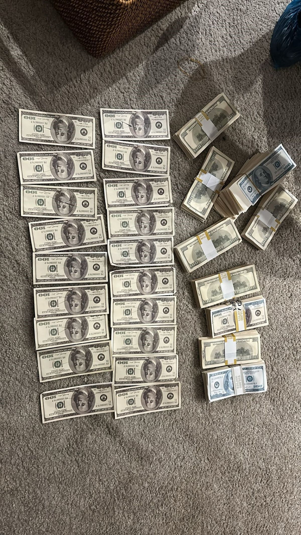 sahte dolarlar ve yüklü miktarda para ele geçirildi.