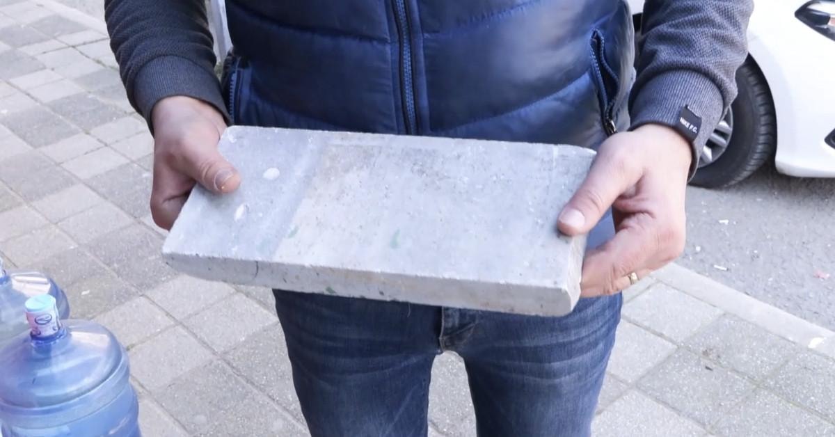 Bu görmüş olduğunuz kaya parçası ile etrafa vurup, tekrar kaçtı. Kaçtığı sırada düştü ve alnı yarıldı. Polis arka tarafta yakalayarak, kelepçeleyip karakola götürdü. Adamın 6 ila 4 yıl arası hapis cezası varmış.
