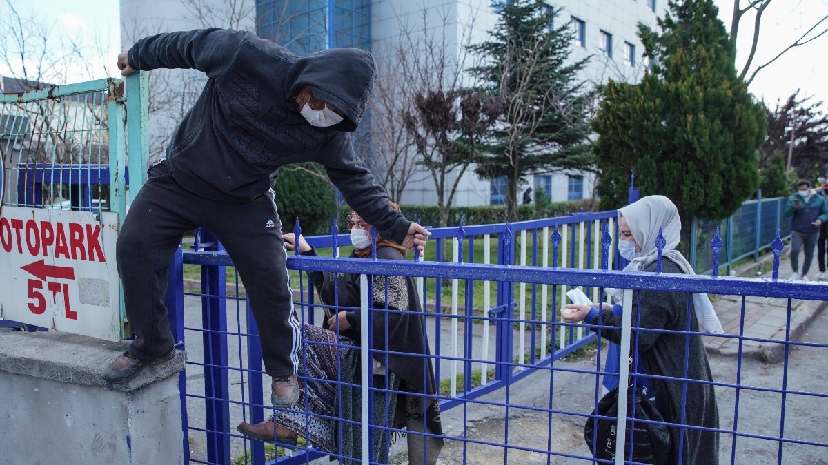 Vatandaşların birçoğu demir kapının üzerinden atlamayı tercih ederken, bazıları da tel örgü kısmından geçerek vergi dairesine ulaştı.