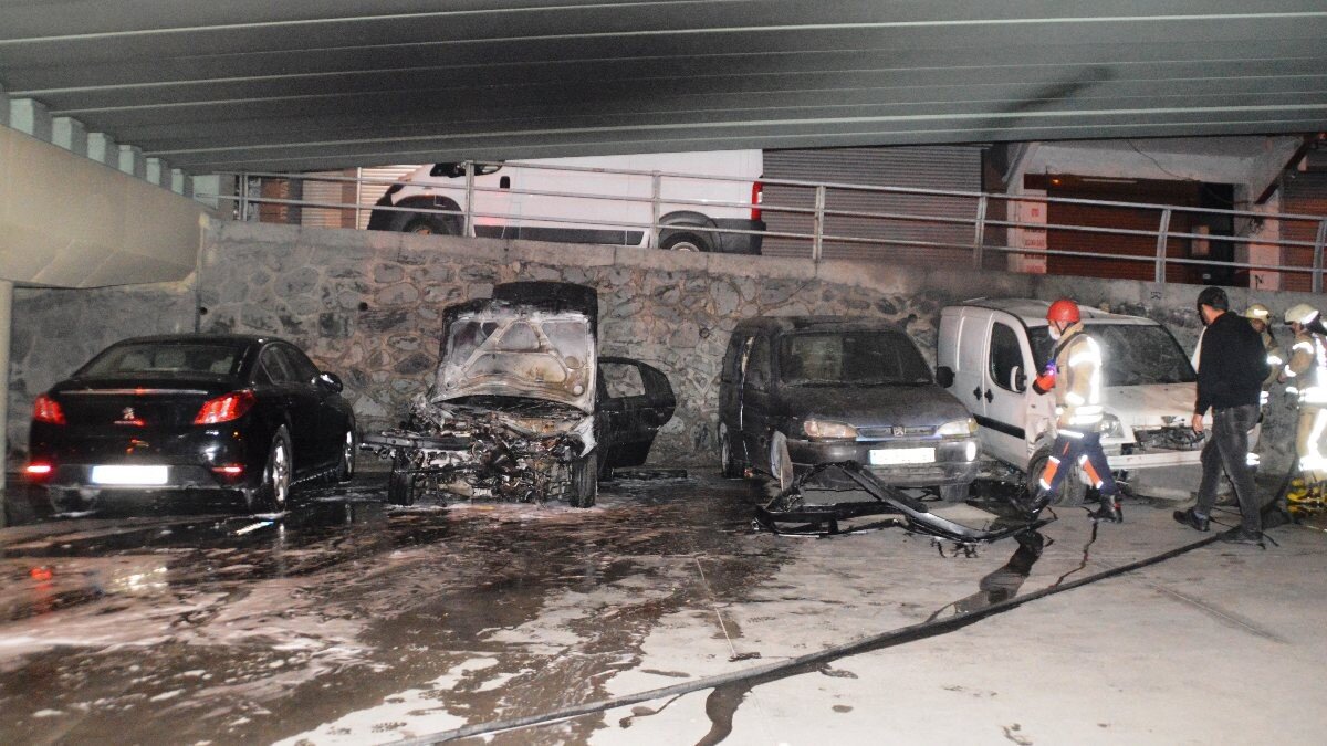 Yangında 2 otomobilde ağır hasar oluşurken diğer 2 araçta maddi hasar oluştu.