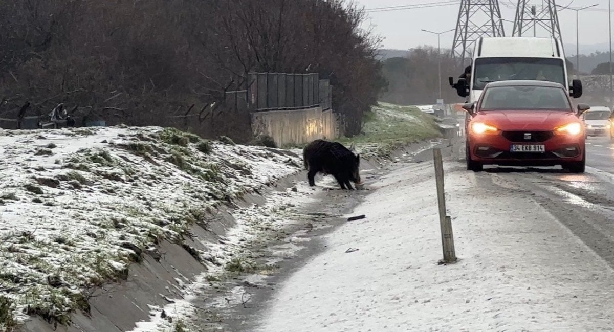 - Yiyecek bulmakta zorlanan bir yaban domuzu, Hasdal-Kemerburgaz yoluna indi.