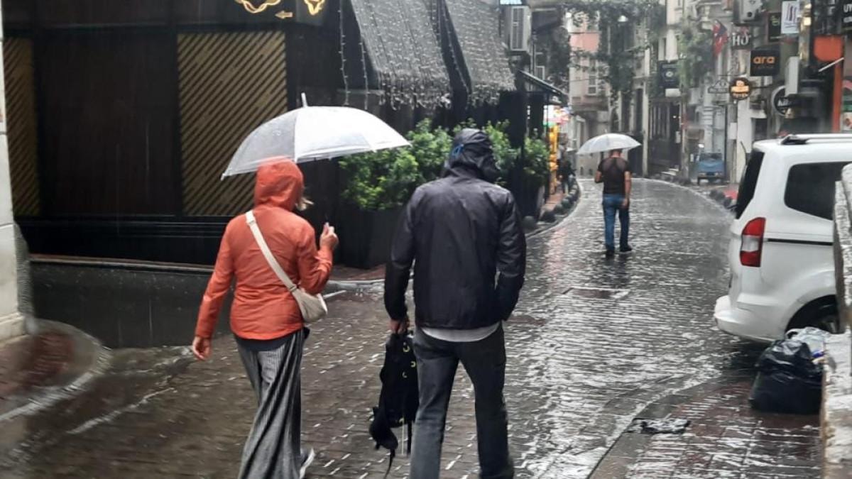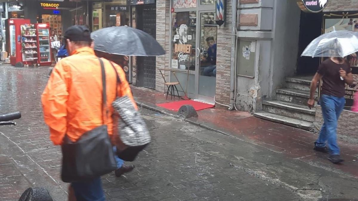 Öğle saatlerinden itibaren etkisini zaman zaman artıran yağış, Taksim Meydanı’nda bulunanlara zor anlar yaşattı.