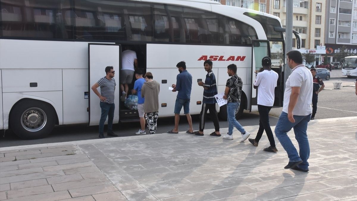 İl Göç İdaresinde işlemleri yapılan kaçak göçmenler, Iğdır Geri Gönderme Merkezi'ne götürüldü.