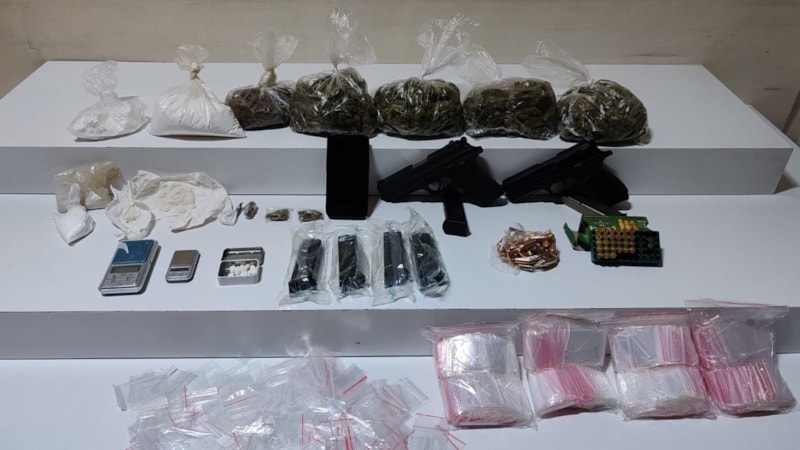 Yapılan aramalarda, 7 parça halinde satışa hazır halde toplam 776 gram kokain, 6 parça halinde satışa hazır halde toplam 453 gram marihuana, 31 adet uyuşturucu hap, 2 adet ruhsatsız tabanca, 74 adet fişek, bin 700 adet şeffaf klipsli poşet ve 2 adet hassas terazi ele geçirildi.
