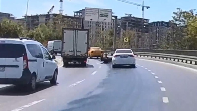 Ergül'ün yolda kayarak düştüğü anlar, başka bir motosiklet sürücüsünün kask kamerasına saniye saniye yansıdı.