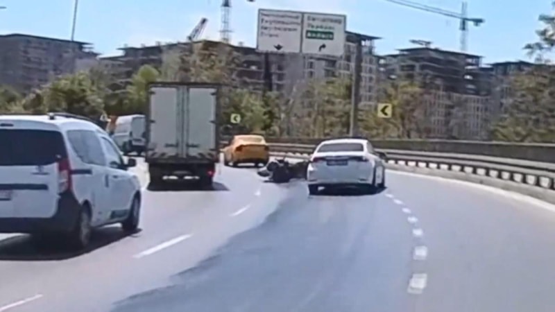 Zeytinburnu'nda motosikletiyle seyir halindeki sürücü, akaryakıt dökülen yolda kayıp düştü. Motosikletli, arkasından ilerleyen otomobil sürücüsünün refleksi sayesinde ölümden saniyelerle kurtuldu.
