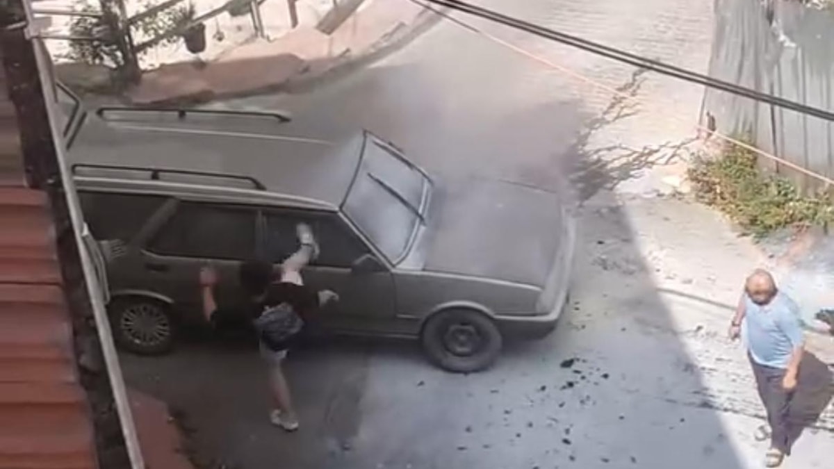 Bu sırada öfkelenen sürücü Ramazan Ö., koşarak aracının camına defalarca tekme attı. Aracın camlarının kırılmasının ardından otomobilin arka bölümüne yönelen sürücü, bu kez de aracın arka camını kırdı.
