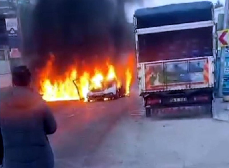 Olayı gören Fikret Perkel, “Araba yanarak birkaç arabaya çarparak geldi." dedi.