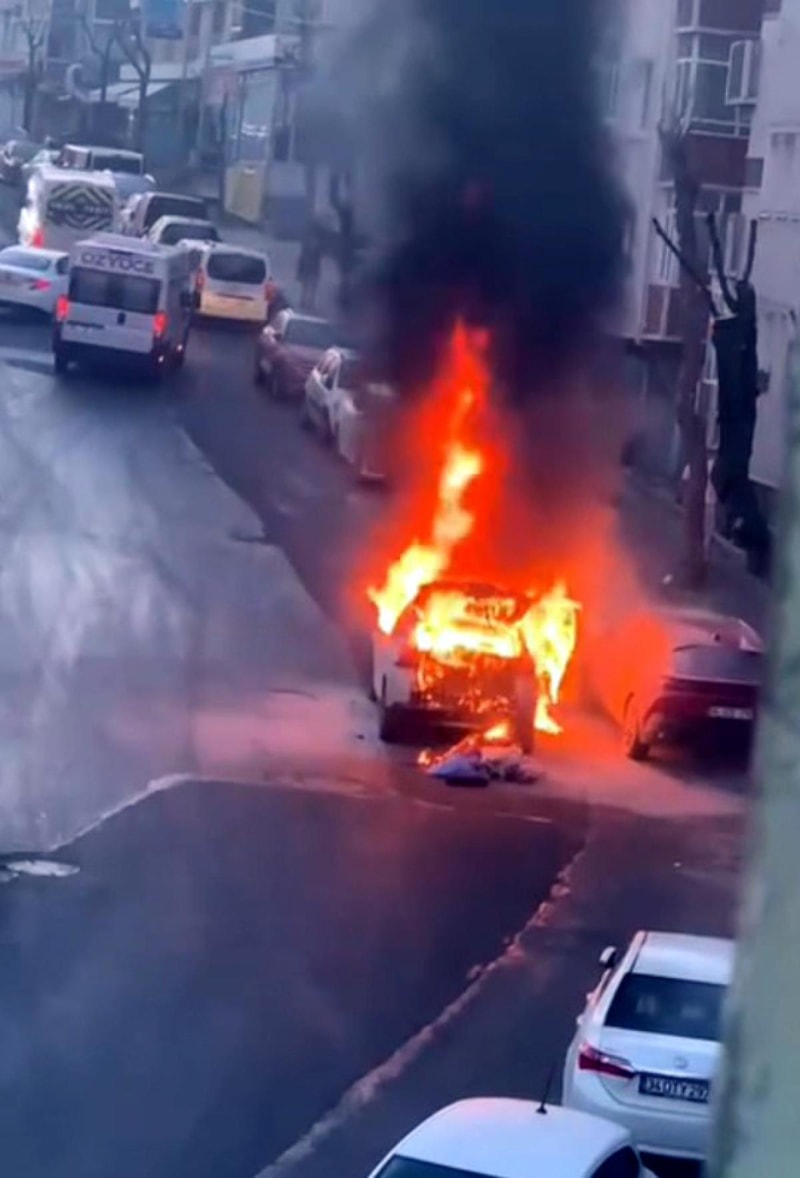 İstanbul'un Avcılar ilçesinde trafiğe çıkan otomobil sürücüsü Serap P.'nin aracı, Ormanlı Caddesi girişinde alevlere teslim oldu.