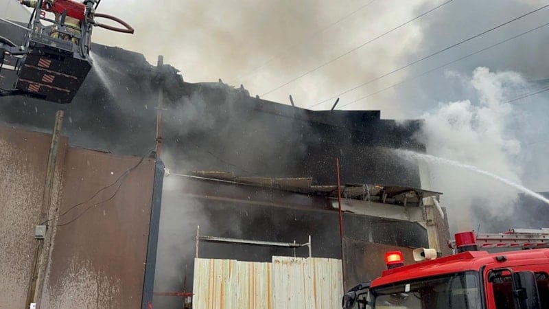 Demir çelik atölyesinden yükselen alevler, kısa sürede yayılında bölgede korkuya neden oldu.