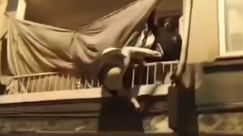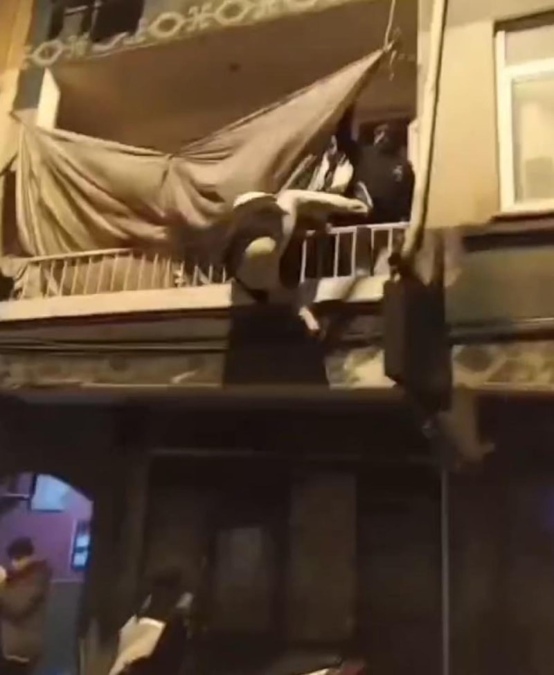 Esenler'de yaşadıkları apartmanda çıkan yangın nedeniyle dairelerinde mahsur kalan yabancı uyruklu şahısların can korkusuyla balkondan atladığı anlar, cep telefonu kamerası ile kaydedildi.