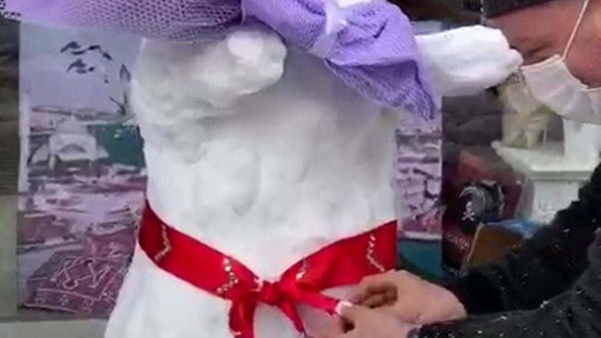Arnavutköy’de bir düğün fotoğrafçısının dükkanının olduğu sokakta yaptığı 'Kardan Gelin', mahalle sakinlerinin de ilgi odağı oldu.