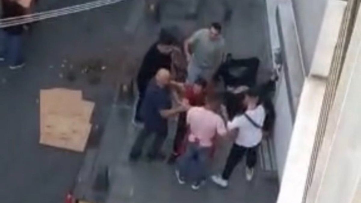 Aldığı darbelerle yere düşen şahsa, bir süre yumruk ve tekme atıldı.