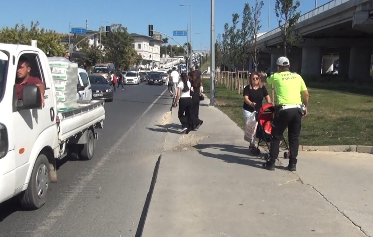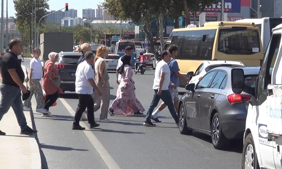 Aralarında çocuklu ve bebek arabalı ailelerin de bulunduğu yayalar, hem kendi can güvenliklerini tehlikeye atıyor hem de sürücüleri zor durumda bırakıyor.