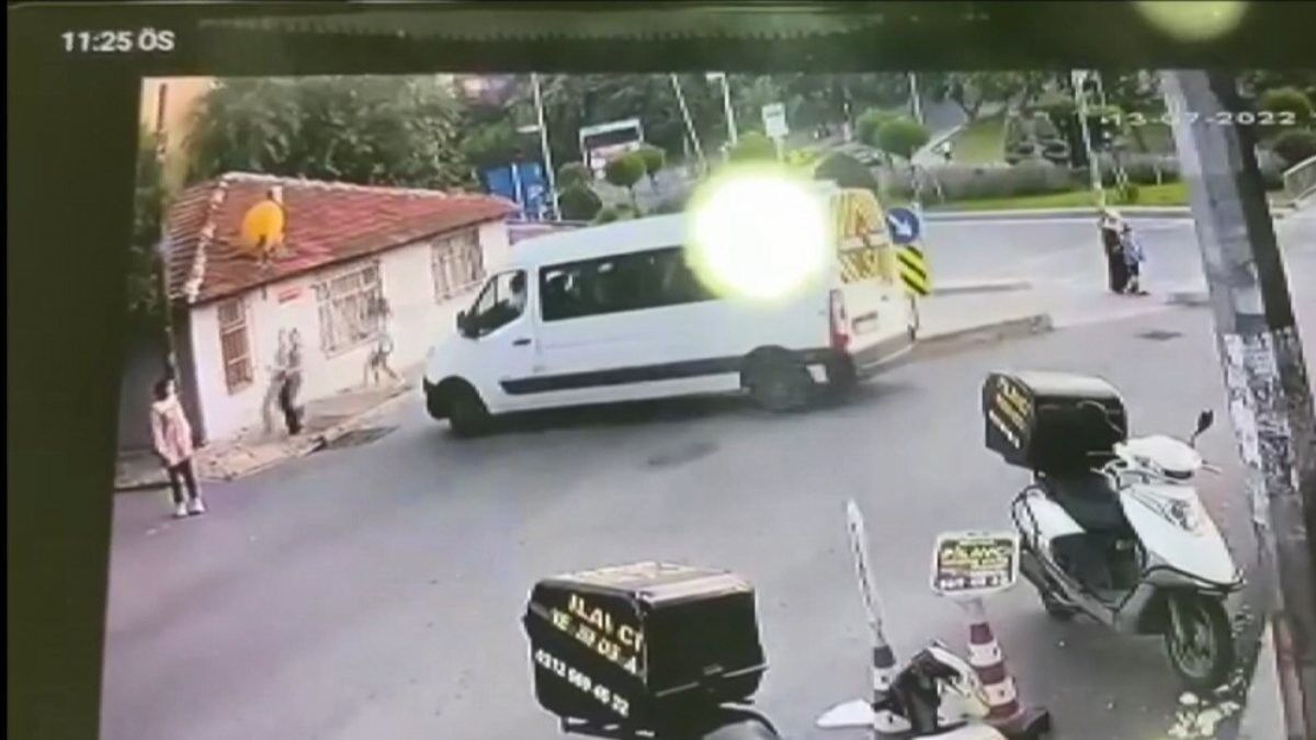 Görüntülerde Elif A. ile Nisa S.'nin şoförünün üzerlerine sürdüğü minibüsten kaçarak kendilerini korumaya çalıştığı görülüyor.