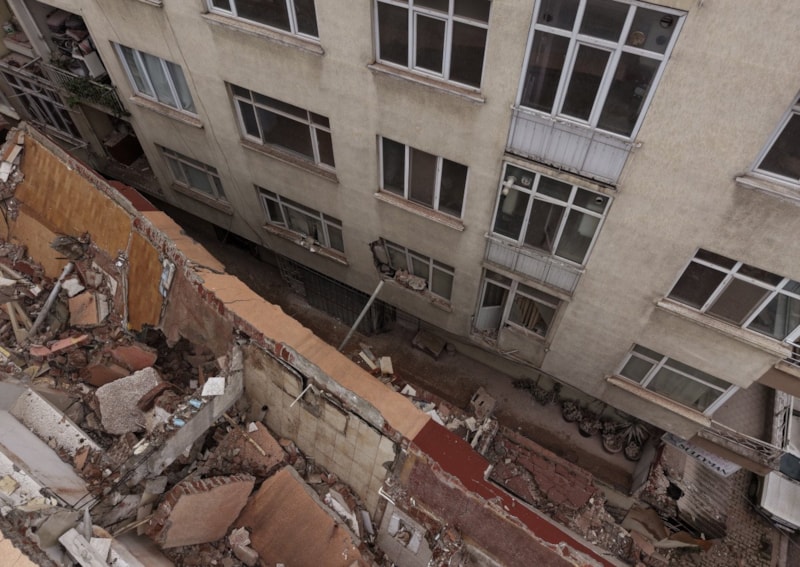 Küçükçekmece’de kentsel dönüşüm kapsamında yıkımı yapılan bir binadan kopan beton parçaları, bitişiğindeki binanın üzerine devrildi. Olayda can kaybı ya da yaralanma yaşanmazken, vatandaşların kaçıştığı anlar güvenlik kamerasına yansıdı.