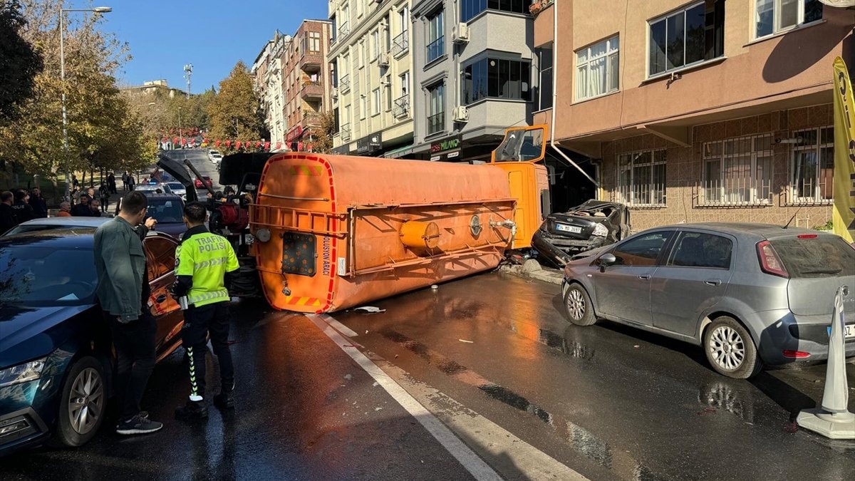 Bayrampaşa ilçesinde seyreden İBB'ye ait yol bakım aracının sürücüsü, Kocatepe Mahallesi civarında direksiyon hakimiyetini kaybetti.