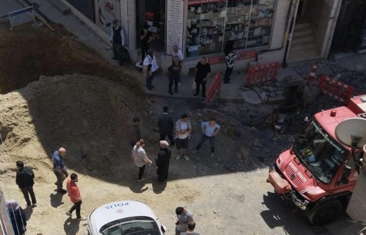 Öte yandan göçük sonrası çalışmanın yapıldığı cadde şerit çekilerek yaya ve araç trafiğine kapatıldı.