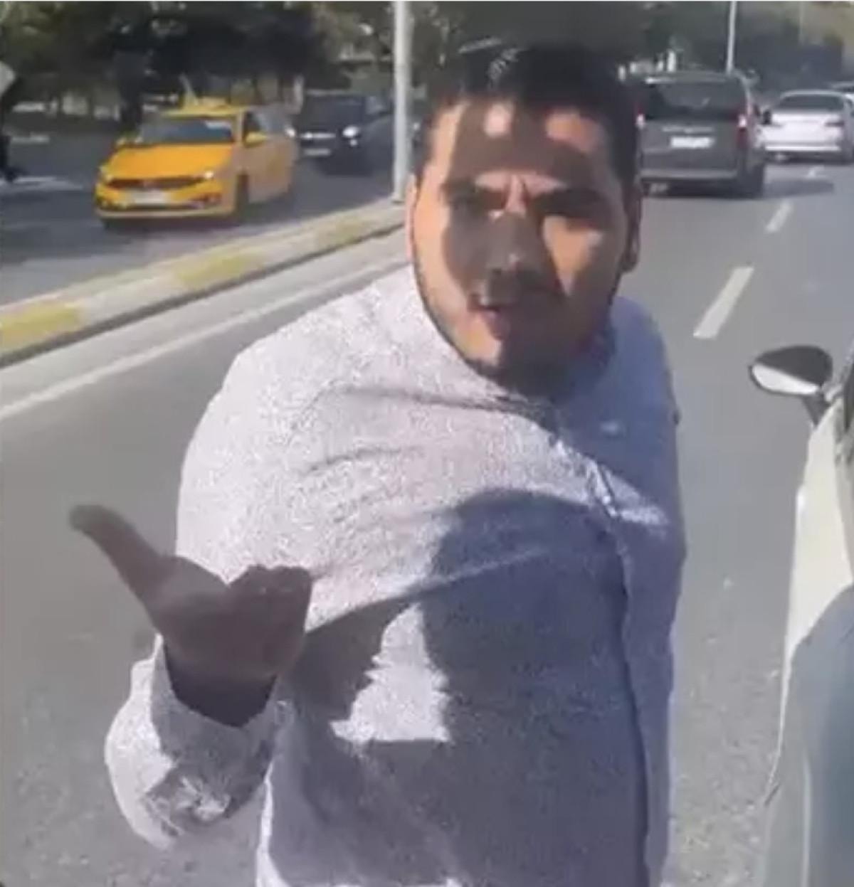 Önünü kesen sürücü için, "Kapıyı aç dövelim şunu." diyen bir adam cep telefonu kamerasına yansıdı.