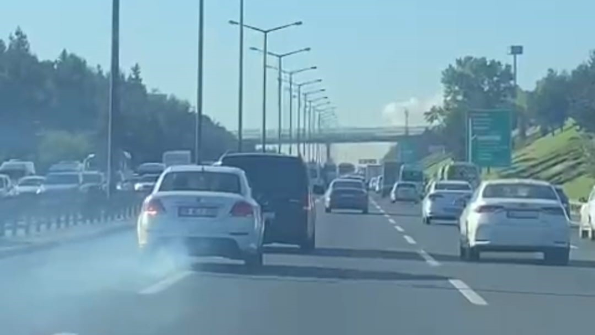 Sol şeritte ilerleyen hafif ticari araç sürücüsü, hız keserek trafiği yavaşlattı. Sol şeritte ilerleyen hafif ticari araç sürücüsü, arkada bulunan ve şerit değiştirmek isteyen sürücüye uzun süre yol vermedi.