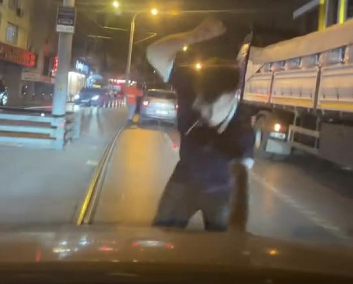 Görüntülerde saldırıya uğrayan sürücünün şikayetçi olacağını söylediği duyuldu.
